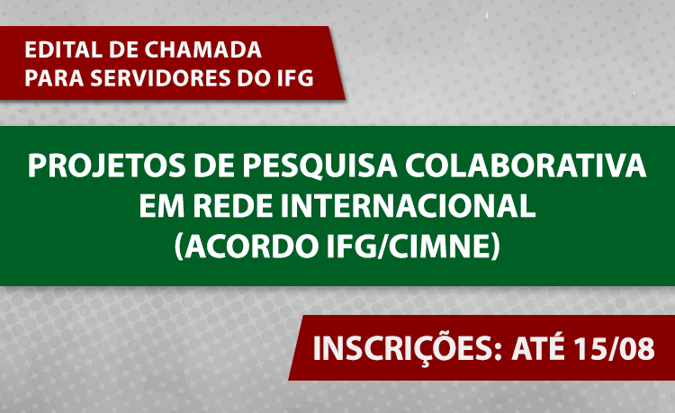 O Instituto Federal de Goiás, por meio de sua Pró-Reitoria de Pesquisa e Pós-Graduação, publicou edital que busca selecionar projetos de pesquisa de desenvolvimento tecnológico e...