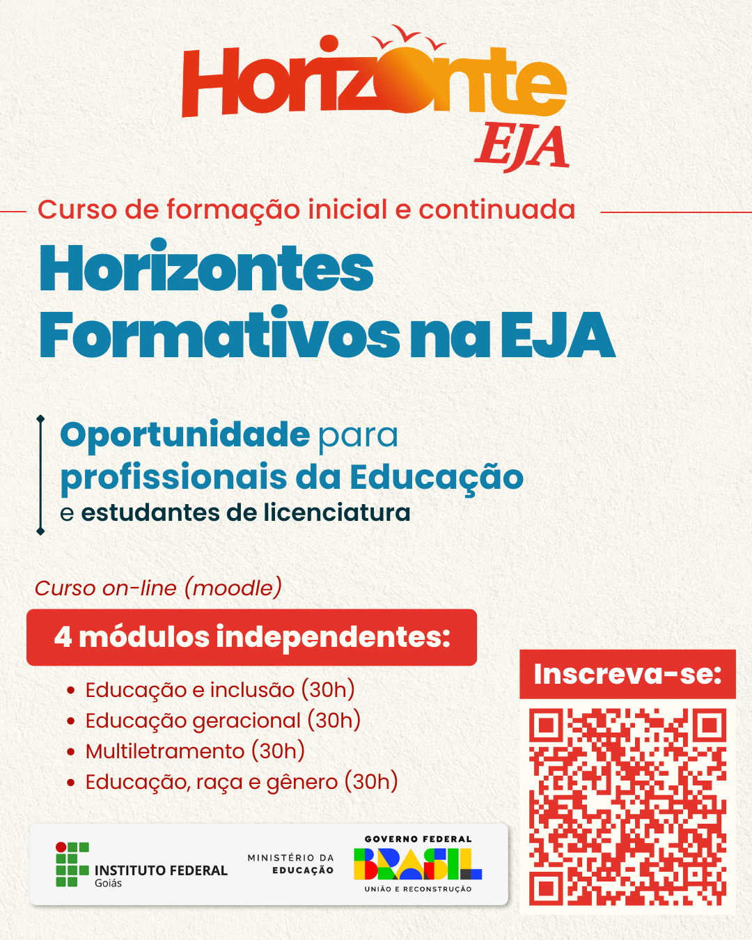 O Instituto Federal de Goiás (IFG), por meio do projeto Horizonte EJA, publica edital de abertura das inscrições do curso de formação inicial e continuada (fic) “Horizontes...