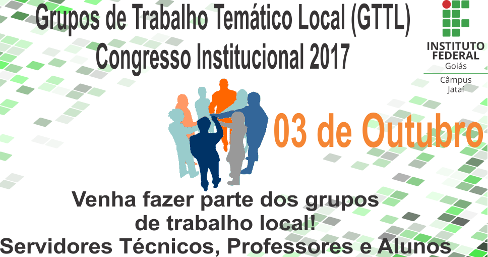 A Comissão Organizadora Local (CLO) do Congresso Institucional do IFG – 2017 convida toda comunidade do IFG – Câmpus Jataí para reunião com o objetivo de constituir 06 Grupos de...