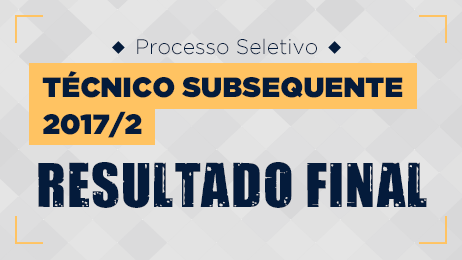 Publicado resultado final da seleção para cursos técnicos subsequentes O prazo de matrícula para os aprovados em primeira chamada vai de 19 a 20 de julho, na Corae do câmpus para o...