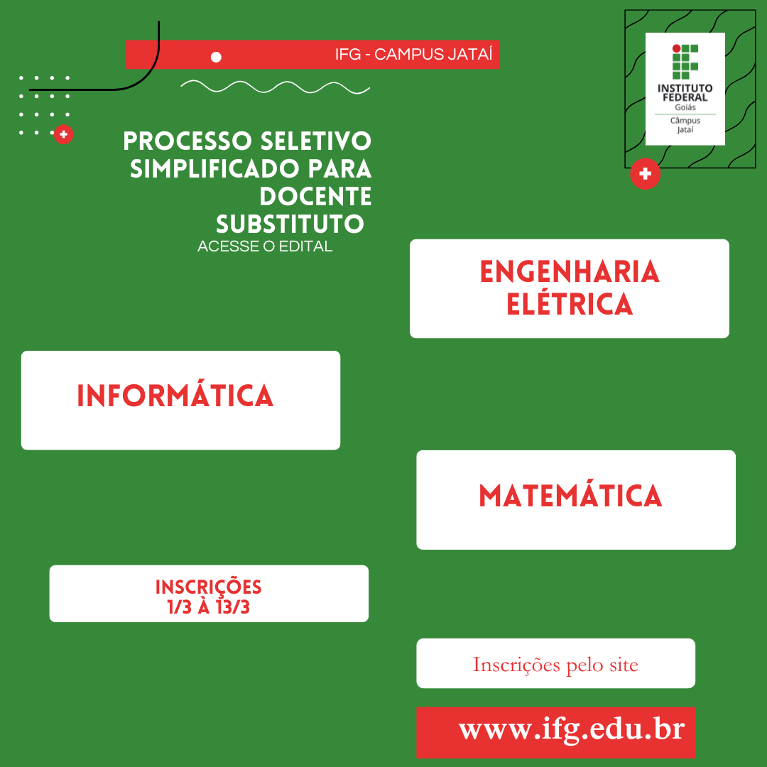 O Câmpus Jataí do Instituto Federal de Goiás (IFG) publicou no dia 25 de fevereiro o edital 07/2025. O edital instaura Processo Seletivo Simplificado para contratação de docentes...
