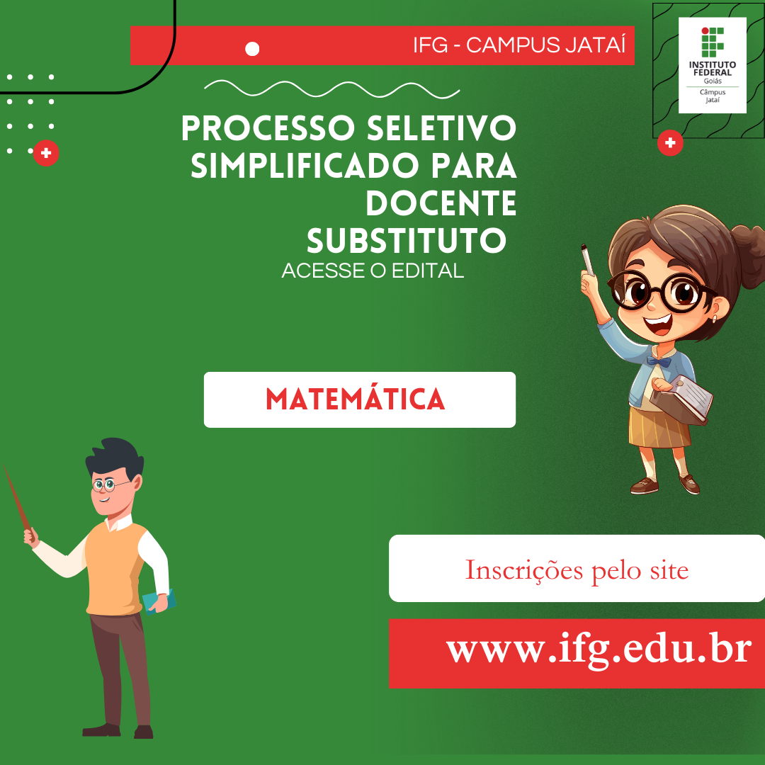 O Câmpus Jataí do Instituto Federal de Goiás (IFG) abriu edital de processo seletivo para contratação de docentes substitutos de Matemática. As inscrições serão realizadas entre...