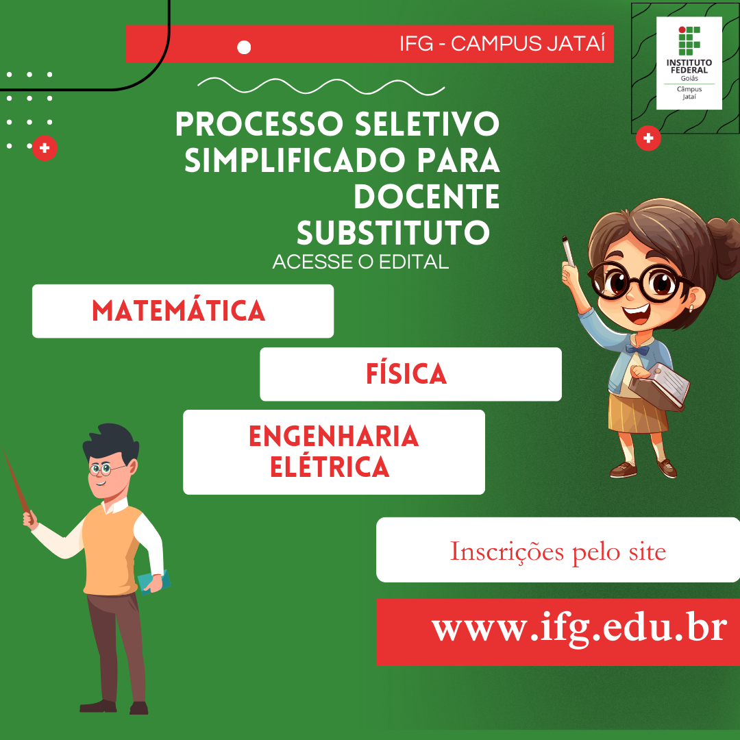 O Câmpus Jataí do Instituto Federal de Goiás (IFG) abriu edital de processo seletivo para contratação de docentes substitutos da área de Engenharia Elétrica, Física e Matemática....