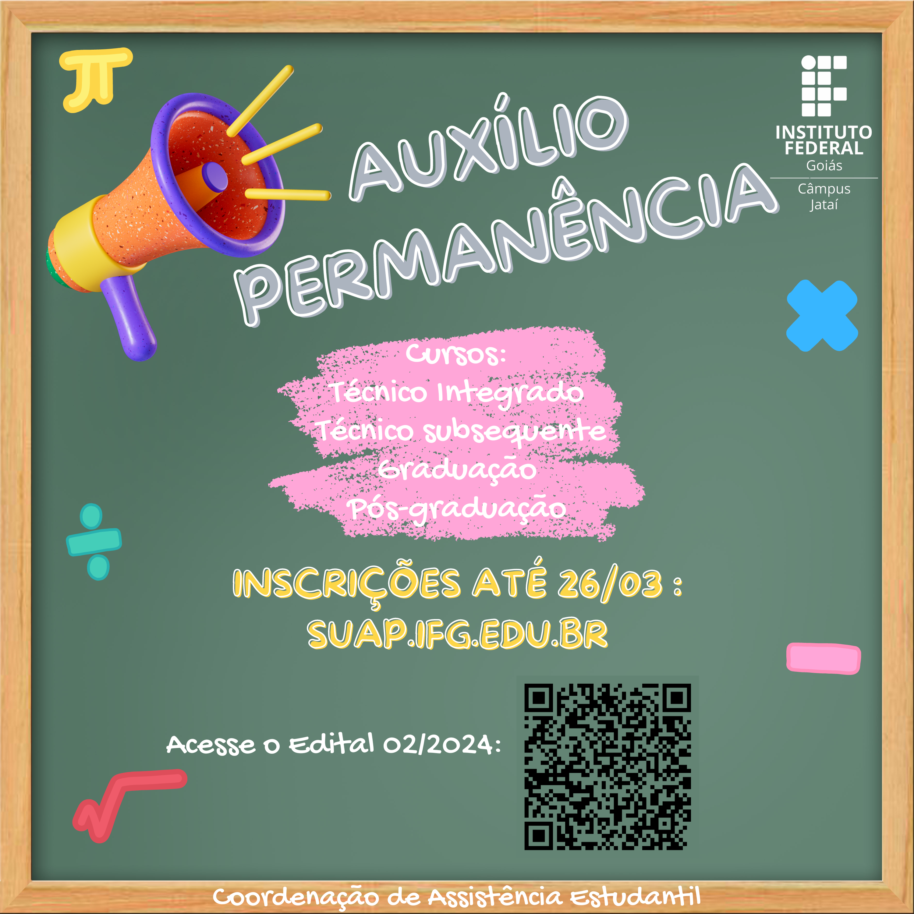 As inscrições para o Programa Auxílio Permanência do Câmpus Jataí do Instituto Federal de Goiás (IFG) seguem abertas até terça-feira, 26 de março. O...