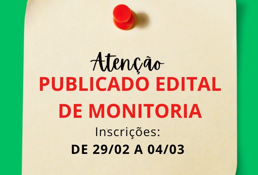 O Instituto Federal de Goiás (IFG) – Câmpus Jataí oferece a seus estudantes 20 vagas de monitorias voluntárias. As inscrições terminam nesta segunda-feira, quatro de março. ....