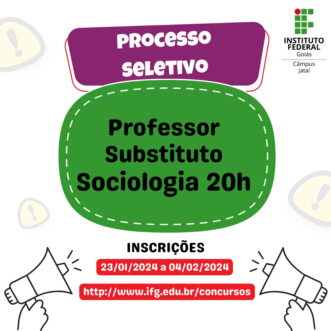 O Câmpus Jataí do Instituto Federal de Goiás (IFG) abriu edital de processo seletivo para contratação de docentes substitutos da área de Sociologia. As inscrições serão realizadas...