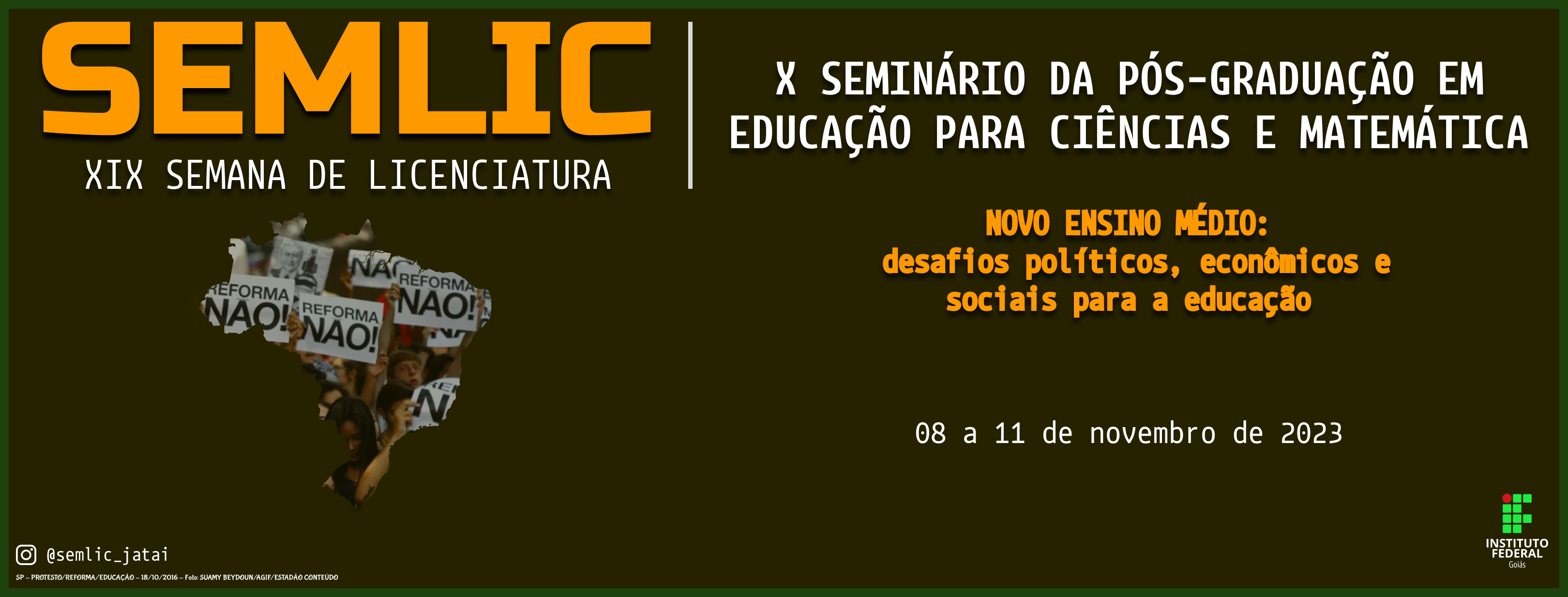 O Câmpus Jataí do Instituto Federal de Goiás (IFG) realizará entre os dias 8 e 11 de novembro a XIX Semana de Licenciatura e o X Seminário da Pós-Graduação em Educação para...