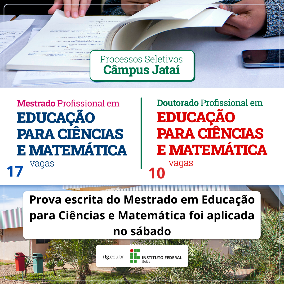 A prova escrita do processo seletivo 2024 do Mestrado em Educação para Ciências e Matemática do Câmpus Jataí do Instituto Federal de Goiás (IFG) foi realizada no último sábado, 21...