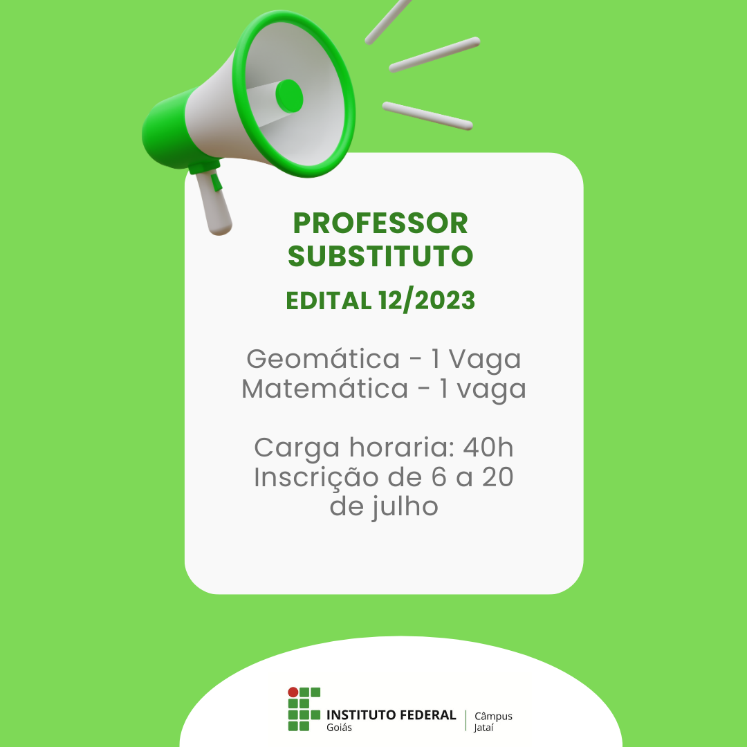 O Câmpus Jataí do Instituto Federal de Goiás (IFG) abriu edital de processo seletivo para contratação de docentes substitutos das áreas de Matemática e Geomática. As inscrições...