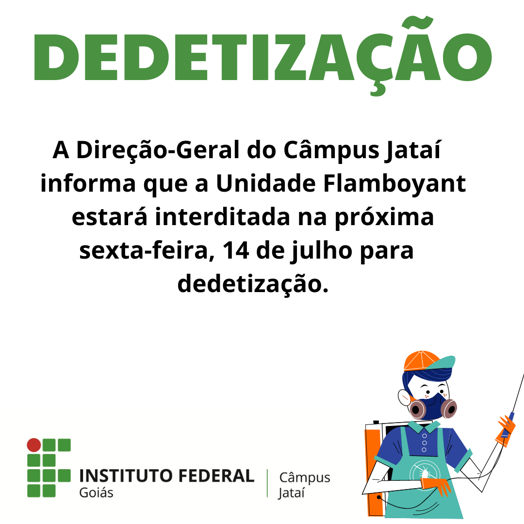 A Direção-geral do Câmpus Jataí informa que a unidade Flamboyant estará fechada na próxima sexta-feira, 14 de julho, para dedetização.