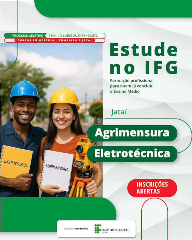 O Câmpus Jataí do Instituto Federal de Goiás (IFG) está com inscrições abertas para o preenchimento de vagas remanescentes dos cursos técnicos subsequentes referentes ao segundo...