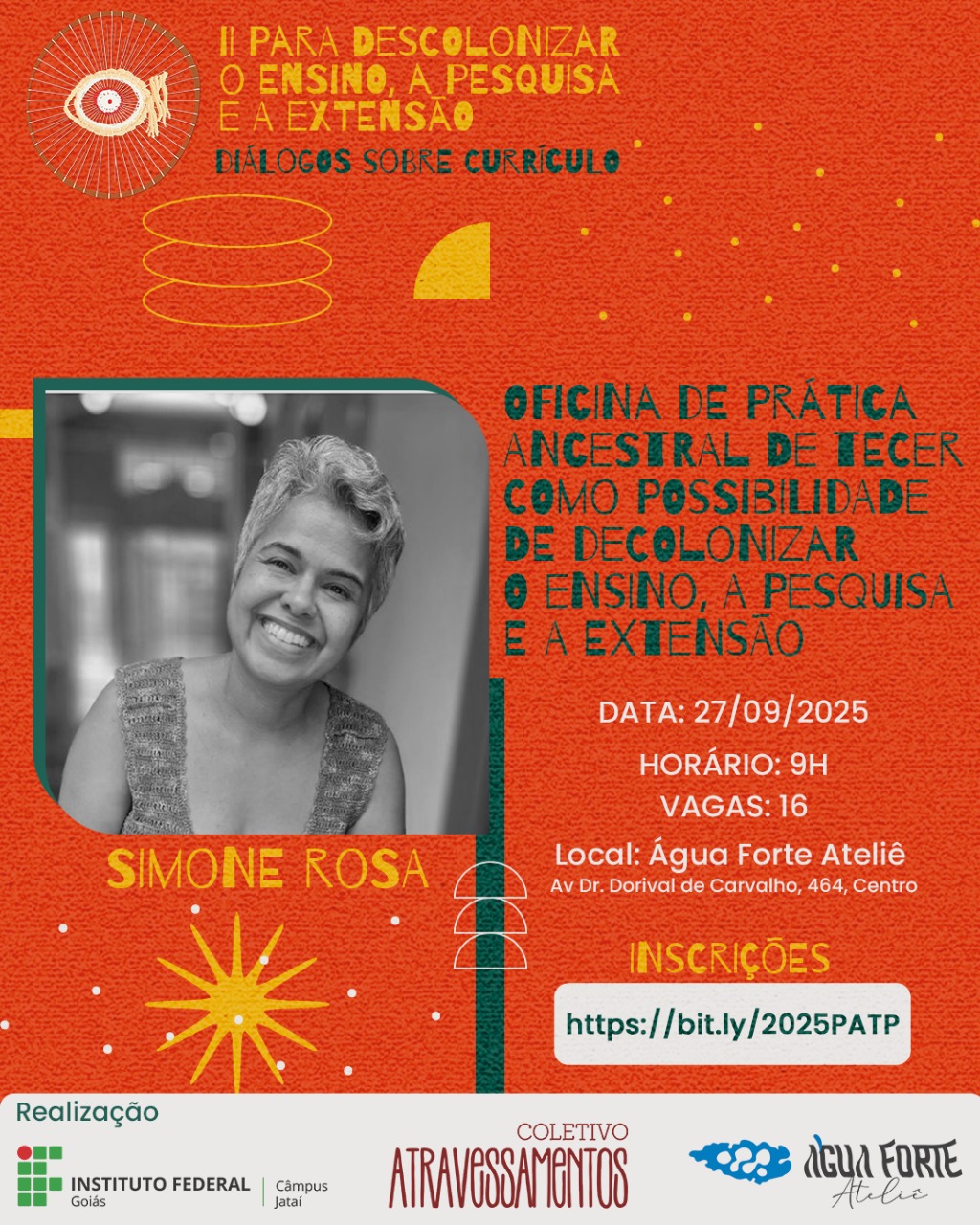 O Câmpus Jataí do Instituto Federal de Goiás (IFG) realizará, no dia 27 de setembro de 2025, às 9h, a Oficina Prática Ancestral de Tecer como Possibilidade de Decolonizar o Ensino, a...