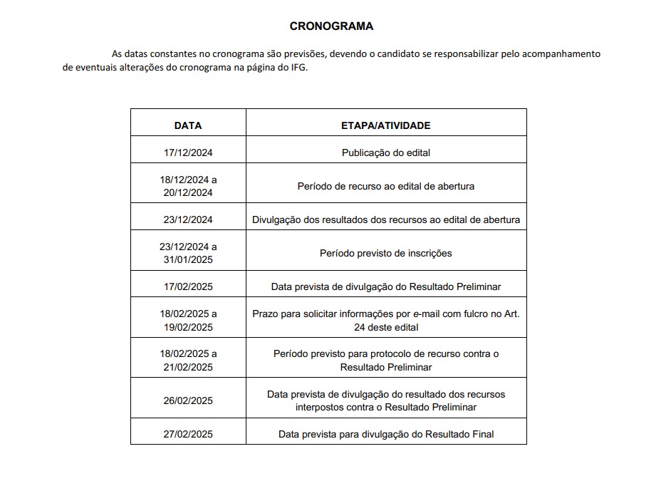 Você está aqui: Página inicial > Últimas Notícias > Publicado edital para formação de lista de interessados em remoção no IFG