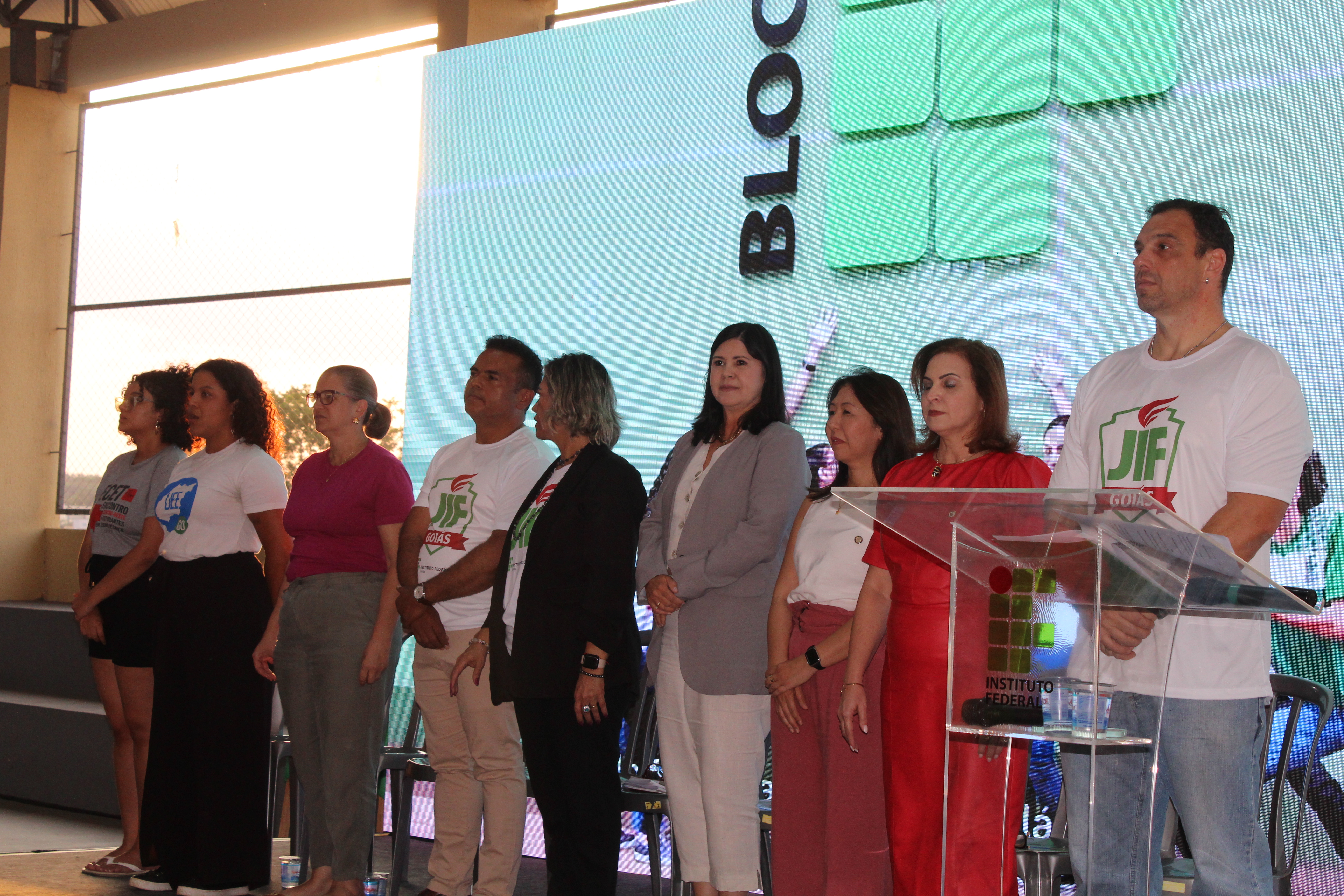 Participaram da solenidade de abertura do JIF Goiás 2025 e também da inauguração do ginásio do Câmpus Senador Canedo, a reitora do IFG, professora Oneida Cristina Gomes Barcelos Irigon; o pró-reitor de Extensão, Willian Batista dos Santos; o pró-reitor de Administração, Diego Silva Xavier; a pró-reitora de Desenvolvimento Institucional e Recursos Humanos, Sandra Abadia Ferreira; a pró-reitora de Pesquisa e Pós-Graduação, Lorena Rosa; a pró-reitora de Ensino, Maria Valeska Lopes Viana, além dos diretores-gerais dos câmpus Senador Canedo, Maria Betânia da Costa; Águas Lindas, Tiago Gomes de Araújo; e de Aparecida de Goiânia, Eduardo de Carvalho Rezende.