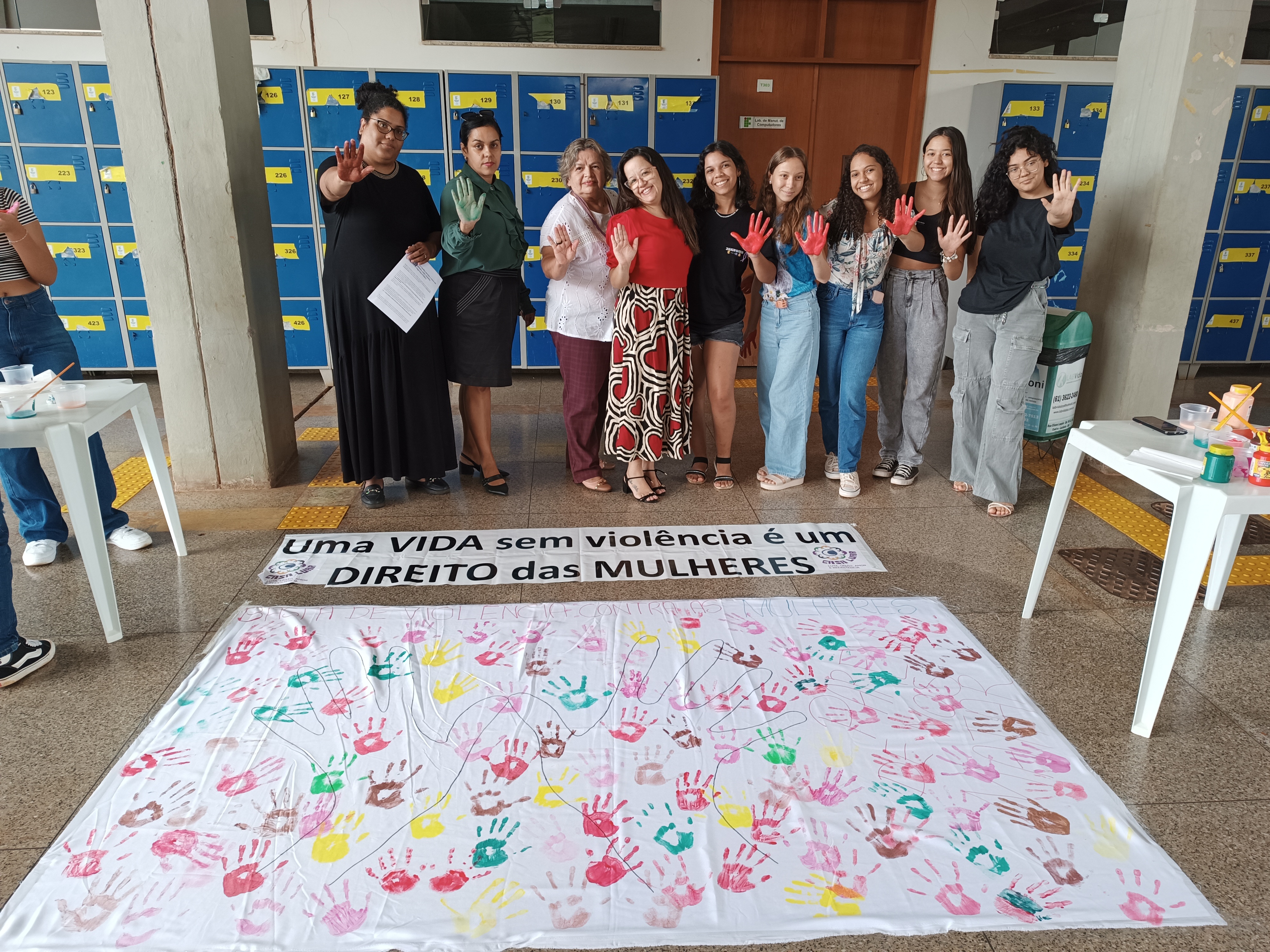 Alunos e servidores deixaram suas mãos registradas como forma de ‘basta’ à violência de gênero