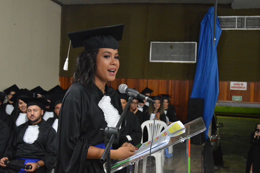 A Pró-reitora de Ensino, Oneida Cristina Gomes, que na cerimônia representou o Reitor do IFG, Jerônimo Rodrigues, ressaltou que há mais de 10 anos o Instituto forma e transforma a vida de gerações de estudantes e o faz a partir de uma visão humanística. Ela também parabenizou os concluintes pela conquista: “Quantas dificuldades, não é verdade, mas vocês se levantaram e superaram, e estão de parabéns pela conquista”.