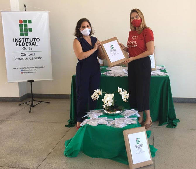 O Câmpus Senador Canedo do Instituto Federal de Goiás (IFG) doou à organização não-governamental EcomAmor 630 máscaras de tecido para prevenção a COVID-19. A entrega ocorreu na quarta-feira, 2. As máscaras serão incluídas nas cestas básicas que a ONG distribuirá a alunos e funcionários de 25 instituições de ensino atendidas pelo projeto “Seja semente, plante amor”.