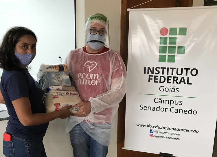 Na tarde de terça-feira, 22, o Câmpus Senador Canedo do Instituto Federal de Goiás (IFG) realizou a entrega de 42 cestas básicas a estudantes dos cursos técnicos e superior e servidores terceirizados. A entrega foi previamente agendada com os beneficiários previamente, para evitar aglomeração, e obedeceu a todas as recomendações sanitárias externas e internas.