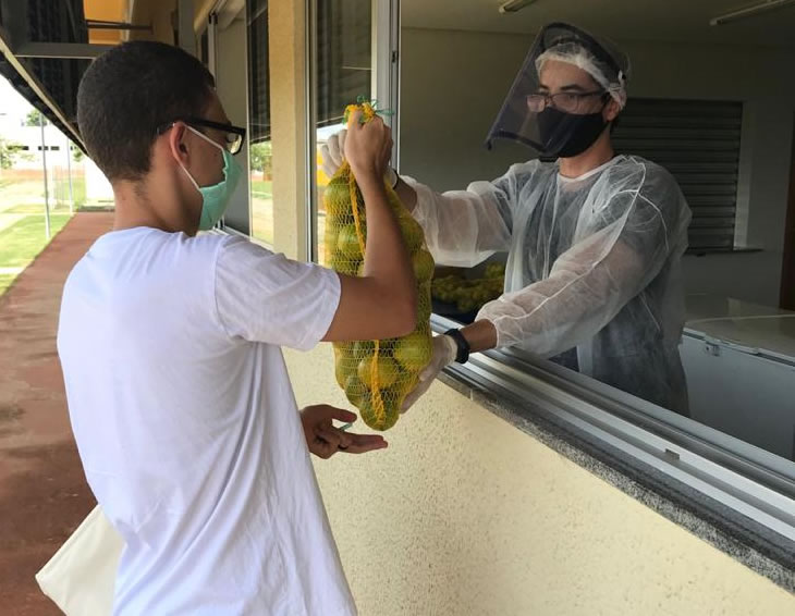 Alunos dos cursos técnicos recebem laranjas e iogurtes e itens de prevenção ao coronavírus