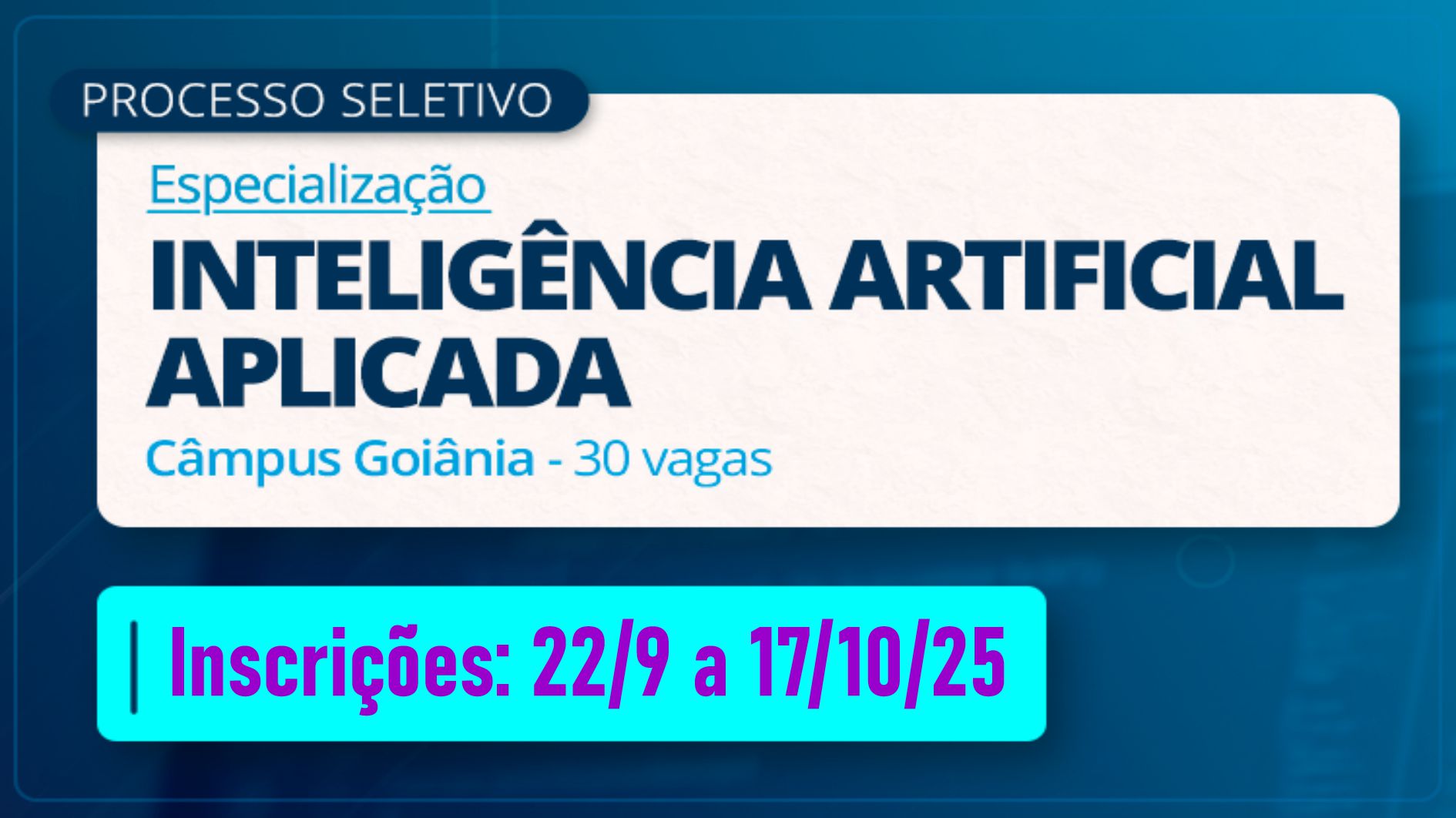 São oferecidas 30 vagas na especialização lato sensu, com aulas presenciais no Câmpus Goiânia
