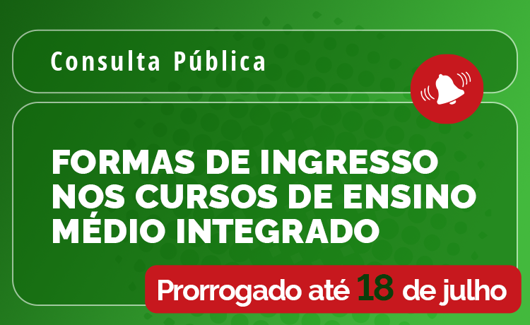 Consulta pública dos processos seletivos para ingresso nos cursos Técnicos Integrados ao Ensino Médio da Instituição foi prorrogada