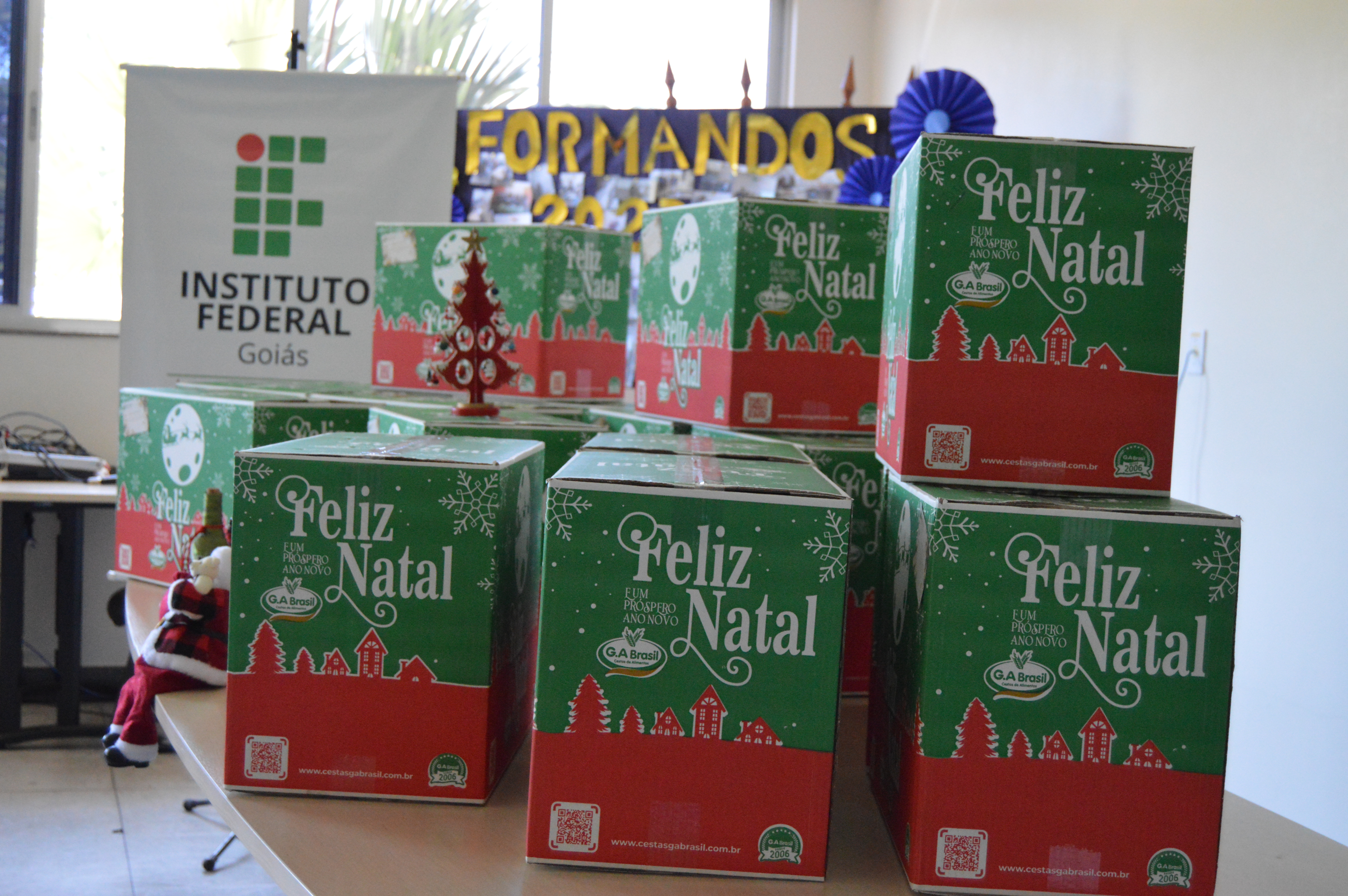 As cestas são compostas por 30 itens e reúne produtos básicos e outros típicos das festas de fim de ano