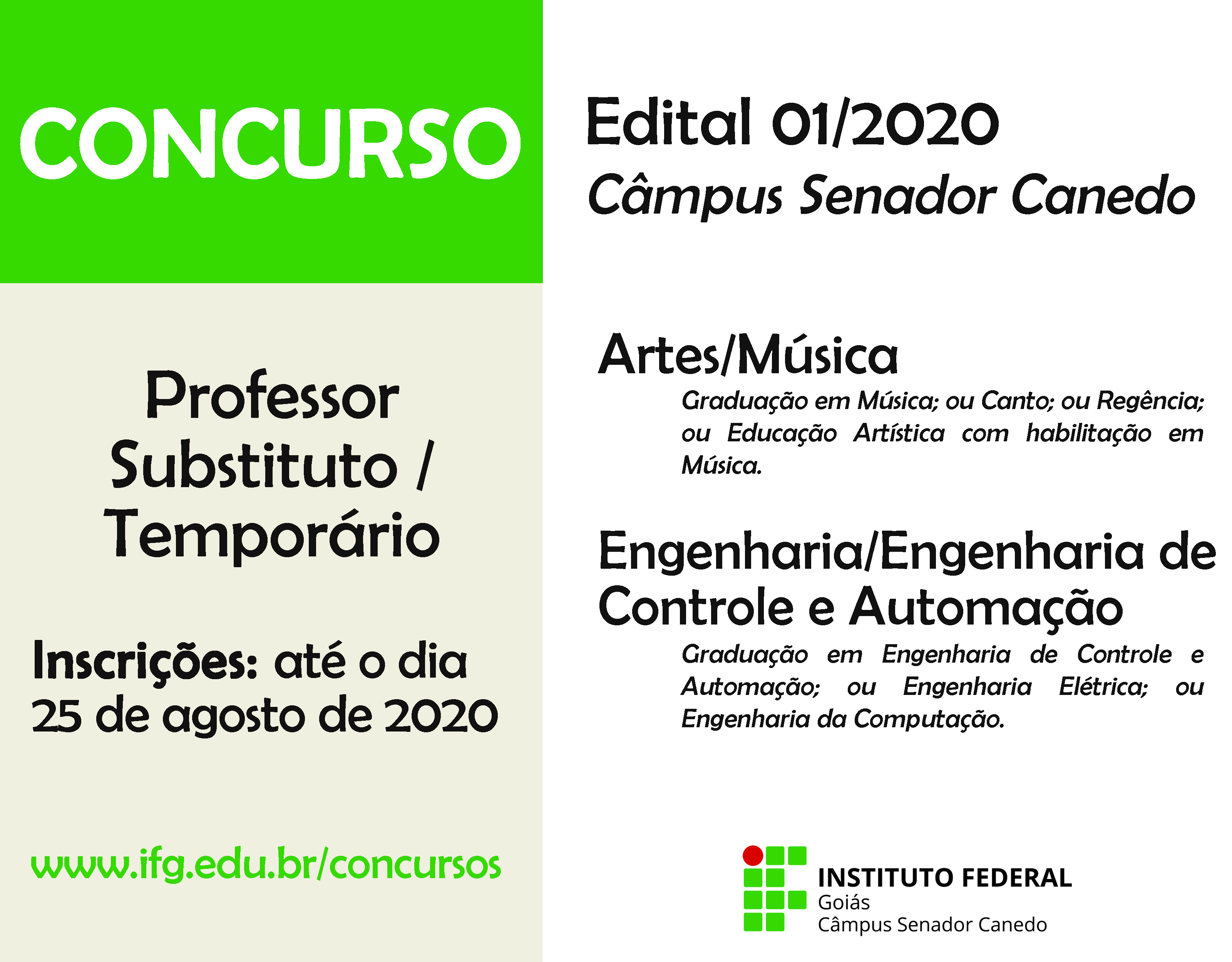 Edital prevê vagas paras as áreas de Artes/Música e Engenharia/Engenharia de Controle e Automação