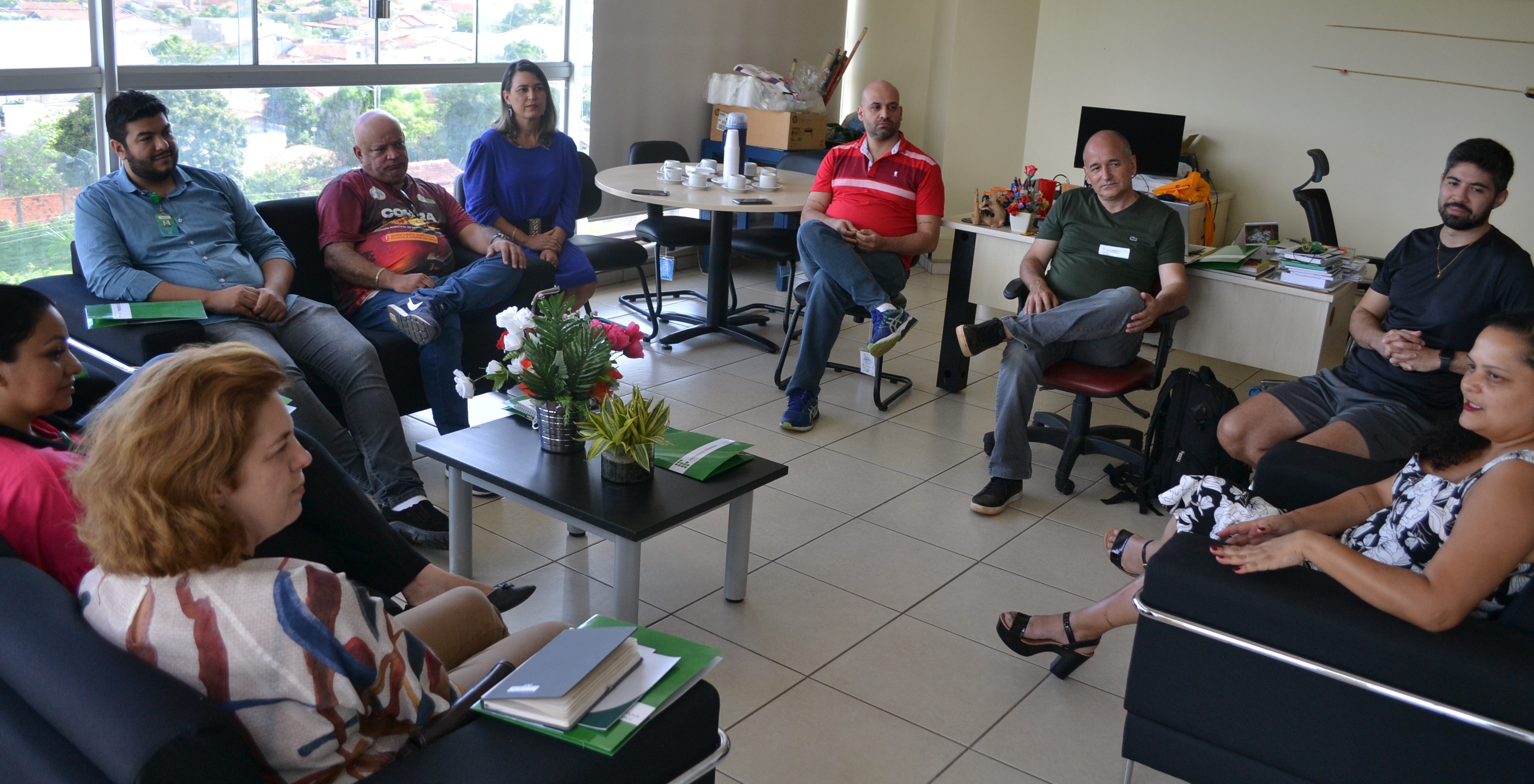 No último dia 28 de março, a Diretora-Geral Andreia Alves do Prado e membros da gestão do Instituto Federal de Educação, Ciência e Tecnologia de Goiás (IFG) - Câmpus Uruaçu receberam representantes do Hospital Estadual do Centro-Norte Goiano (HCN) e da Secretaria Municipal de Meio Ambiente para discutir possíveis parcerias entre as instituições. Dentre os presentes estavam integrantes da Organização Social Instituto de Medicina, Estudos e Desenvolvimento (IMED) representando o HCN: Karina Pavão Patrício - Diretoria médica de sustentabilidade; Pedro Vitor - Gerente de Facilities; Fhadya Costa Sousa Lima - Enfermeira do Núcleo de vigilância Epidemiológica; e Márcio Alves - produtor cultural). Além destes, a reunião contou ainda com a presença de Carlos Santiago - Gestor Técnico da empresa Carbono Zero (consultoria especializada em neutralização de carbono) e também do Secretário Municipal de Meio Ambiente, Rogério Augusto Pacheco.