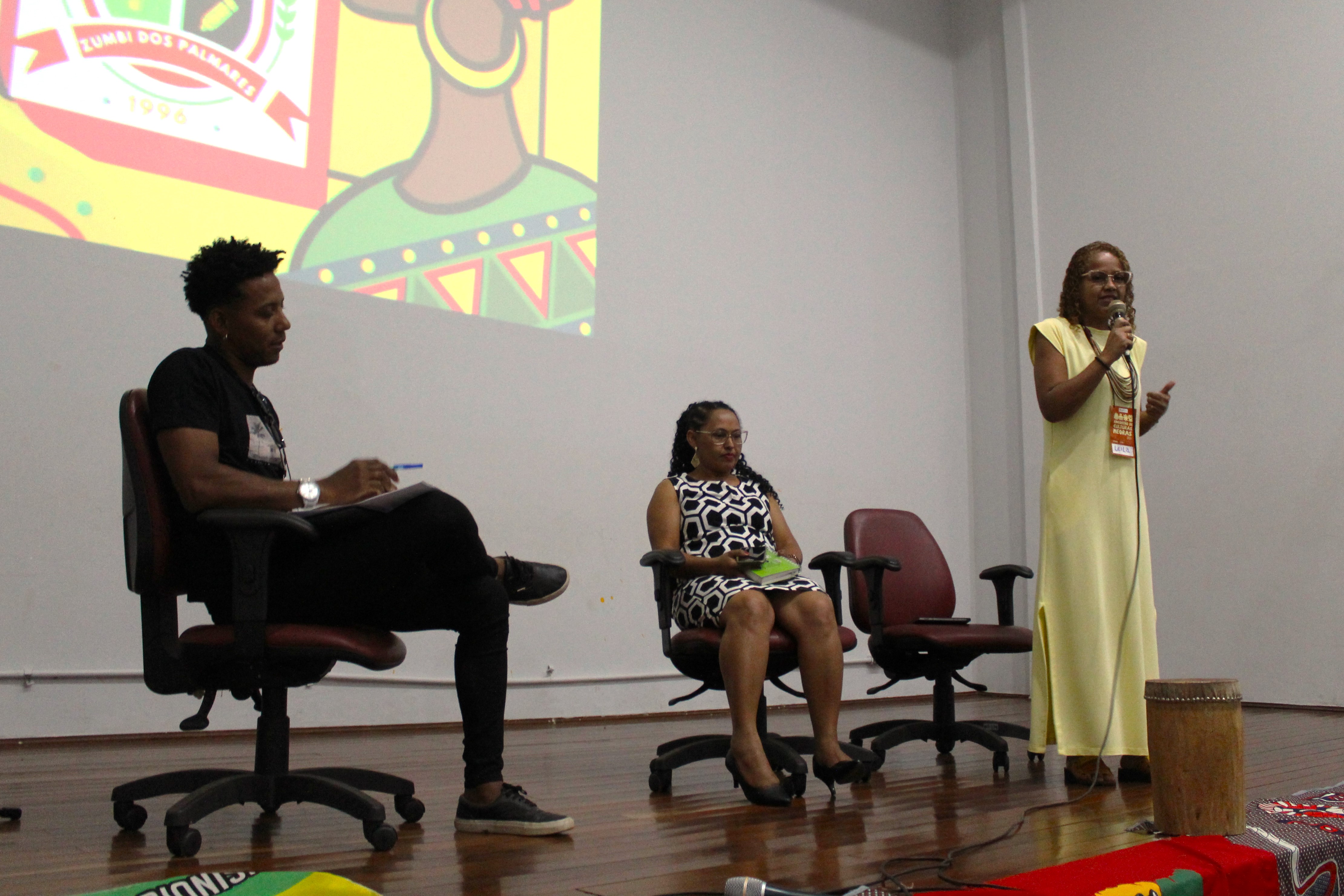 Adão, Nirda e Leila durante mesa-redonda no Encontro de Culturas Negras