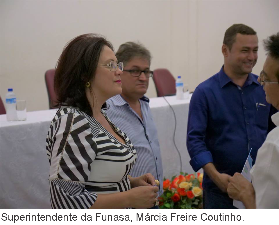Compuseram a mesa diretiva da cerimônia, o Diretor Executivo do IFG, professor Adelino Candido Pimenta, representando o Reitor da Instituição, professor Jerônimo Rodrigues da Silva; a superintendente da FUNASA, senhora Márcia Freire Coutinho; o Diretor-Geral do Câmpus Uruaçu, professor Leonne Borges Evangelista; o prefeito de Hidrolina, senhor Osvaldo Moreira Vaz, representando os prefeitos dos demais municípios que participam do projeto, e o secretário do Meio Ambiente de Uruaçu, senhor Charles Dias Alencar.