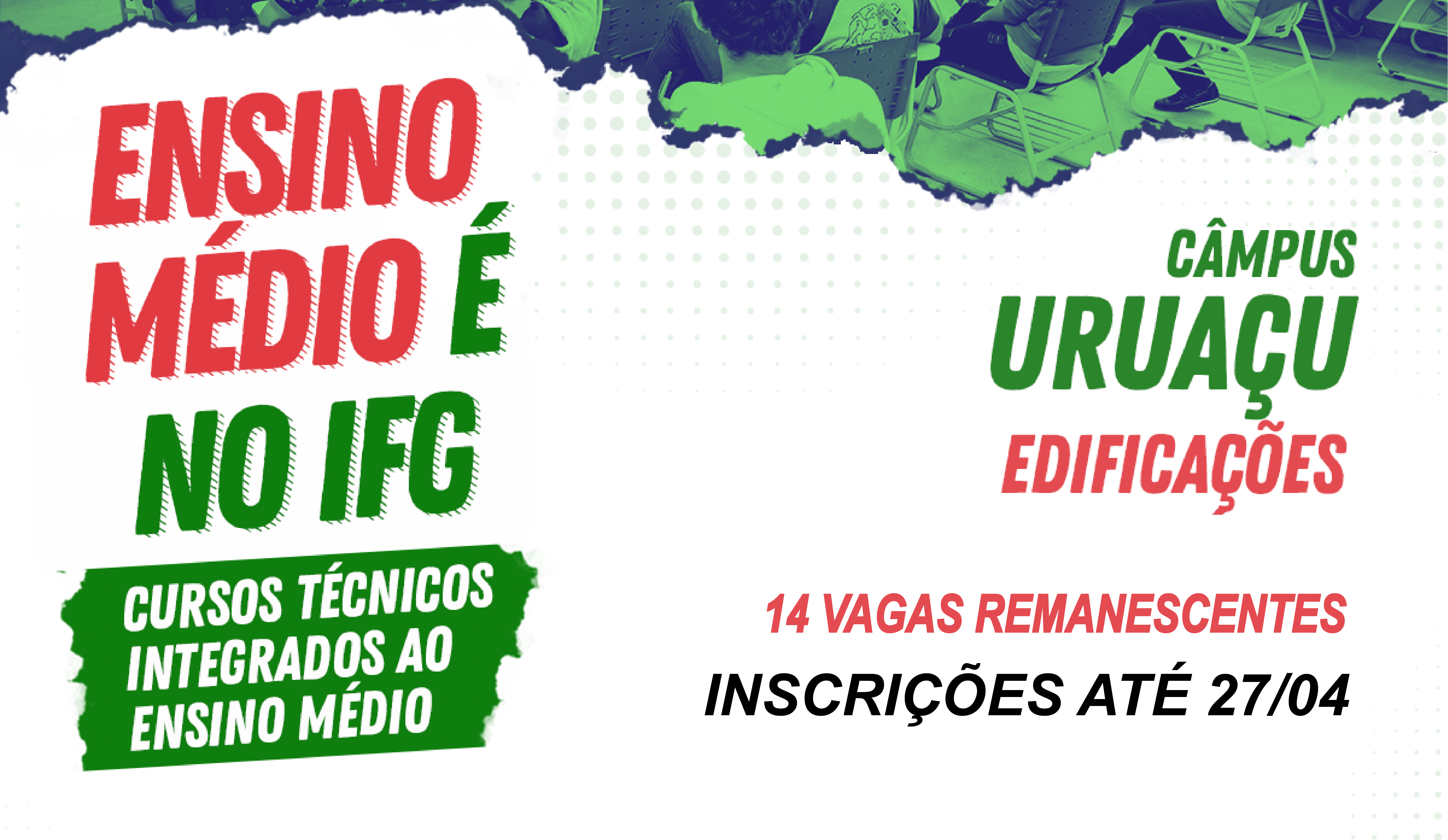 Estão disponíveis 14 vagas para o curso técnico integrado em Edificações do Câmpus Uruaçu