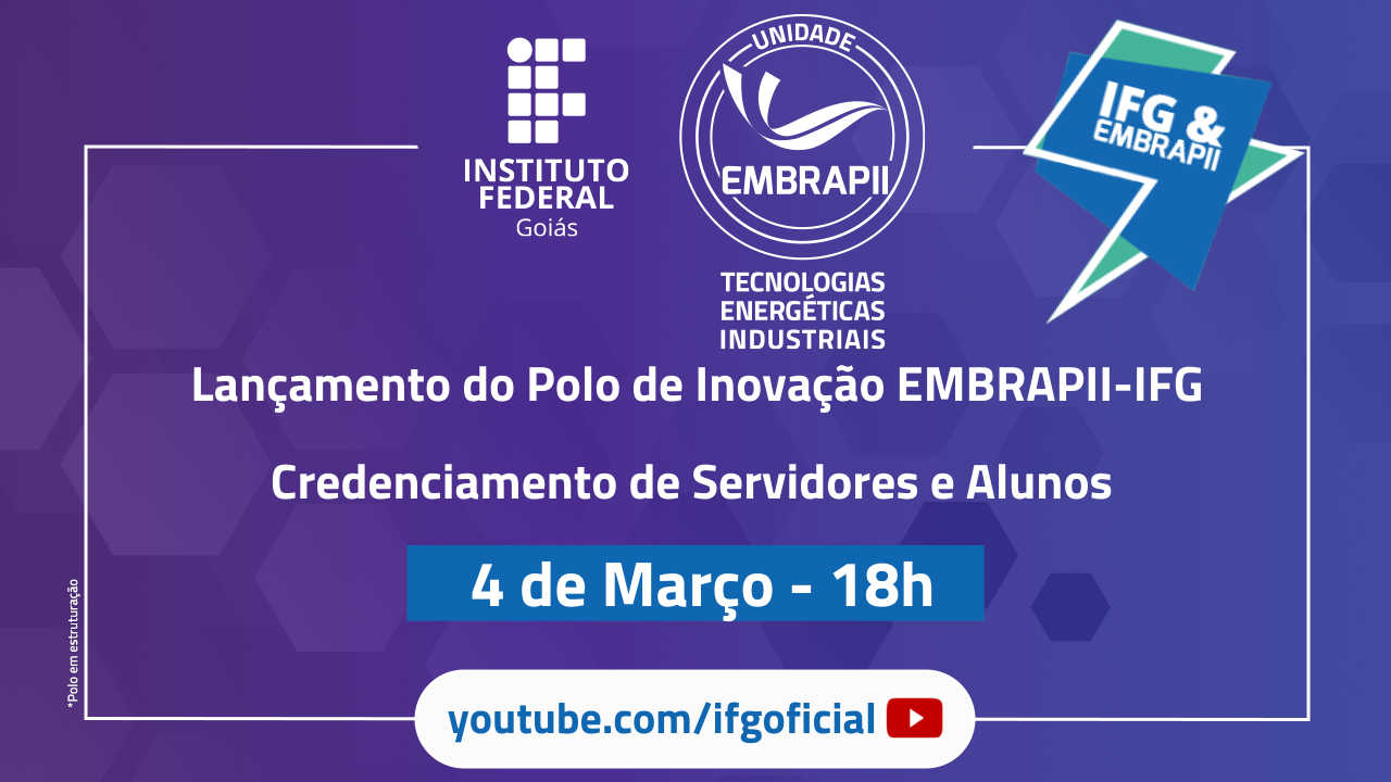 Unidade vai atuar em Tecnologias Energéticas Industriais. Transmissão será pelo canal do IFG oficial no YouTube