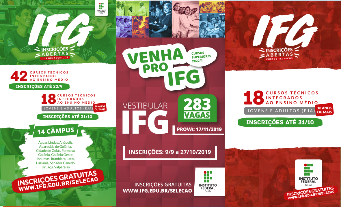 As vagas dos sete cursos estão distribuídas em quatro editais, disponíveis no Portal do IFG. Inscrições são gratuitas