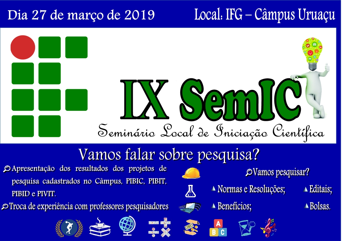 Programação do IX Seminário Local de Iniciação Científica traz os resultados de 31 projetos de pesquisa realizados na Instituição