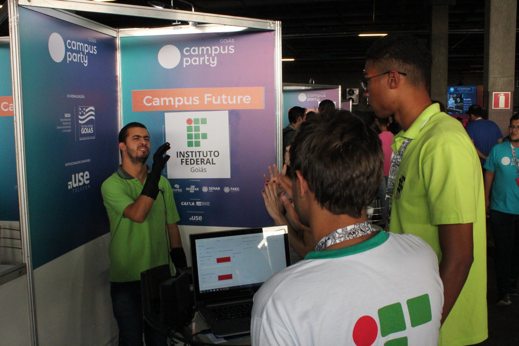 Yuri Alves de Oliveira, aluno do curso técnico de Automação Industrial do Câmpus Senador Canedo, bastante empolgado, disse que essa era a primeira vez que ele falava em um evento tão grande: “A gente fica nervoso, por estar em algo tão grande e famoso como a Campus Party. Mas isso agrega muito valor, pois a gente aprende a explicar para as pessoas; a gente aprende a passar nosso conhecimento para todos os tipos de pessoas”. E Yuri teve um projeto bastante importante para apresentar ao longo destes dois últimos dois dias na Future: “As luvas transceptoras”, que, segundo o jovem aluno, “conseguem traduzir a língua de sinais para a língua falada e escrita, em diversos idiomas por meio de sensores”.