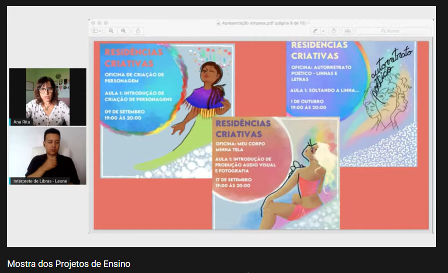 Em outro momento da Mostra, o projeto “Residências Criativas”, desenvolvido pela professora Ana Rita da Silva, do Câmpus Cidade de Goiás, foi apresentado. Segundo a docente, a ação já está em sua terceira edição e surgiu no contexto da pandemia da Covid-19 trazendo a questão: “Que poéticas construiremos agora?”.