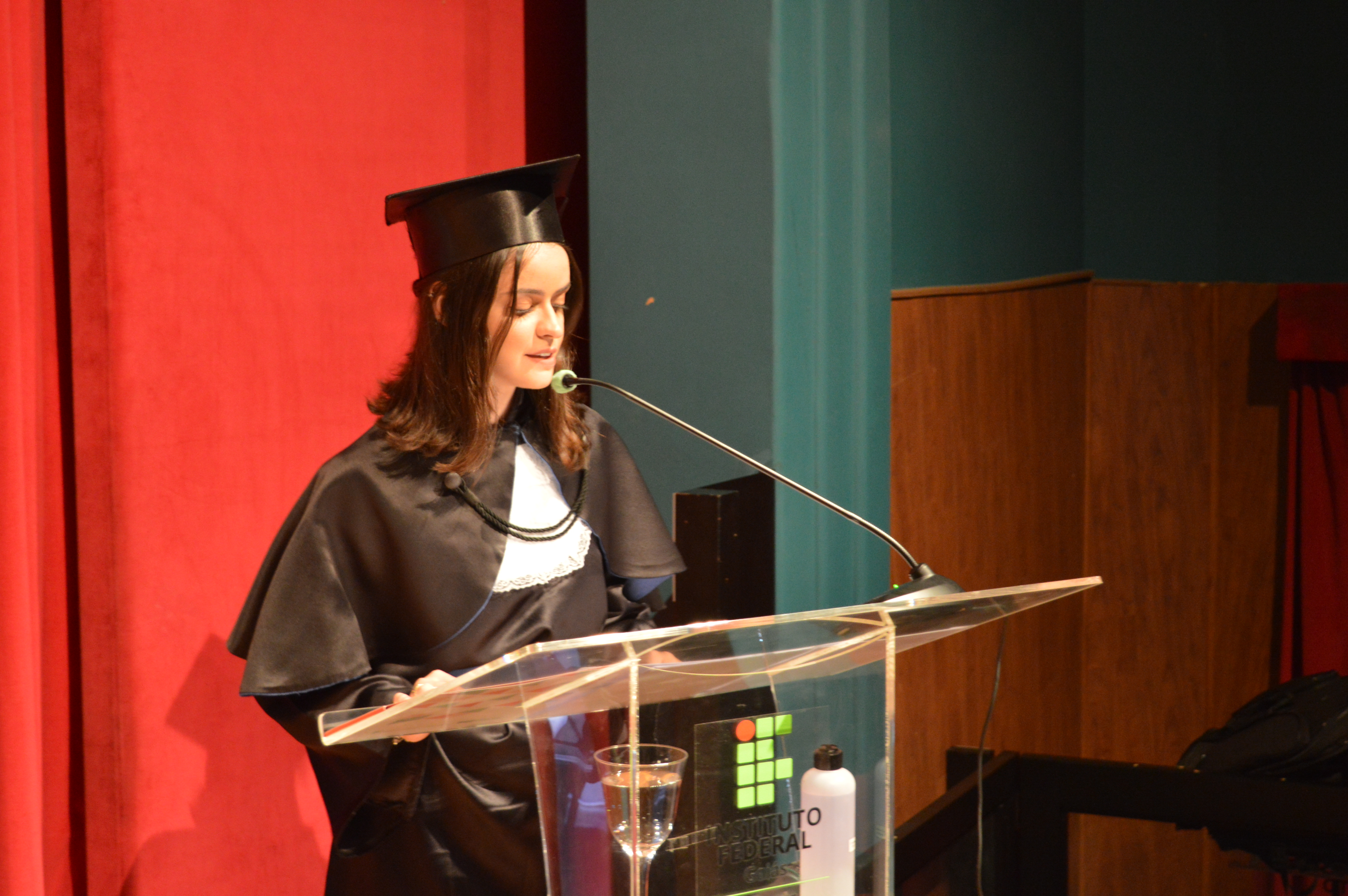 Fabiana Luiza e Sousa, do curso de Engenharia de Controle e Automação, levou os formandos às reflexão. “As mudanças pelas quais passamos em nossas vidas refletem profundamente quem somos. Mudanças. Nós fomos, durante todo o período de faculdade, um grande quebra-cabeça e cada peça representa uma pequena mudança. Não foi fácil. Nenhuma mudança é confortável, afinal, de contas o período de maior ganho de conhecimento e experiência é o período mais difícil na vida de alguém. O que mudou em nós nos últimos anos?”.