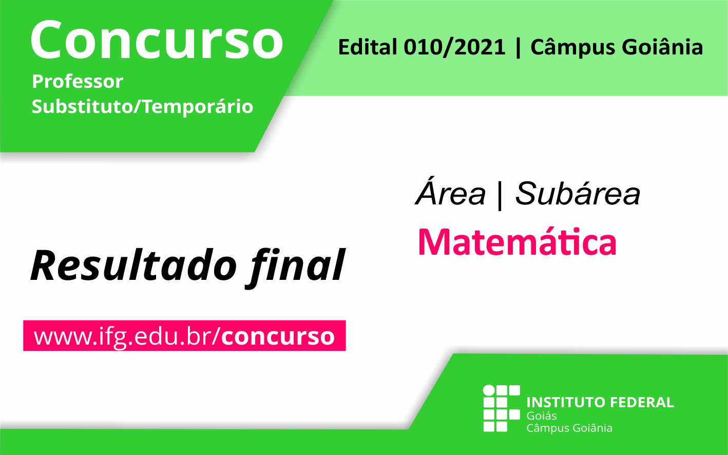 - Publicado resultado final da seleção para professor substituto/temporário, regida pelo Edital 05/2021 do Câmpus Goiânia