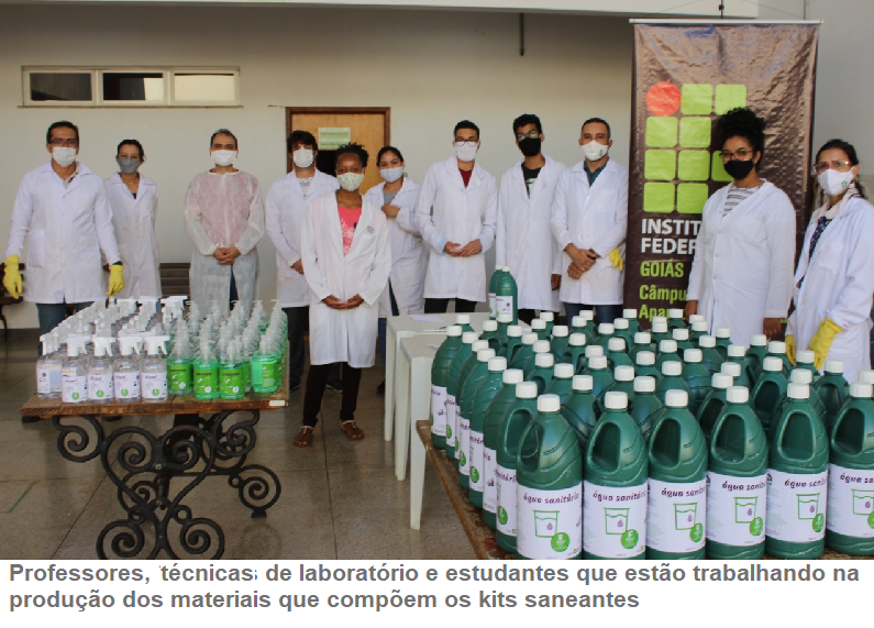 A entrega foi feita pela diretora-geral do Câmpus Aparecida de Goiânia do IFG, professora Ana Lucia Siqueira de Oliveira, ao vice-prefeito do município, Veter Martins Morais, que esteve representando o prefeito Gustavo Mendanha. A remessa teve o quantitativo de 238 kits, do total de 3.200 conjuntos que estão sendo produzidos nos laboratórios de Química do campus. Cada kit contém um frasco de 500 ml de álcool glicerinado a 70%, um frasco de 500 ml de sabonete líquido para mãos e um frasco de 2 litros de água sanitária.