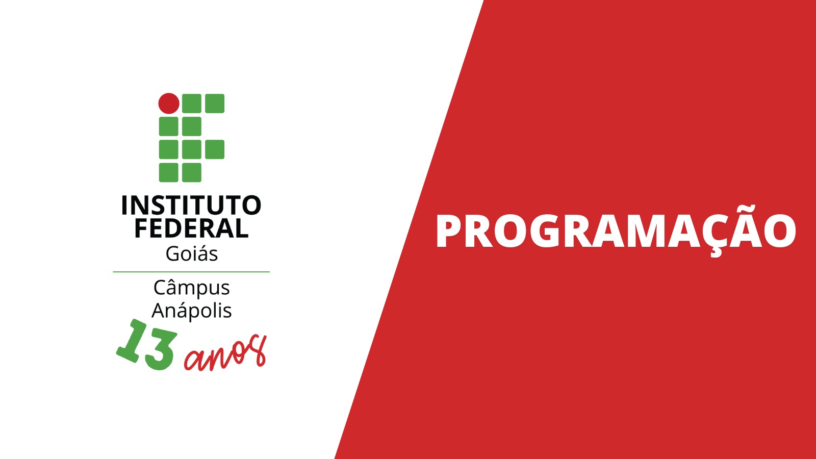 Você está aqui: Página inicial > Últimas Notícias > Divulgada programação do 13º aniversário do IFG Anápolis