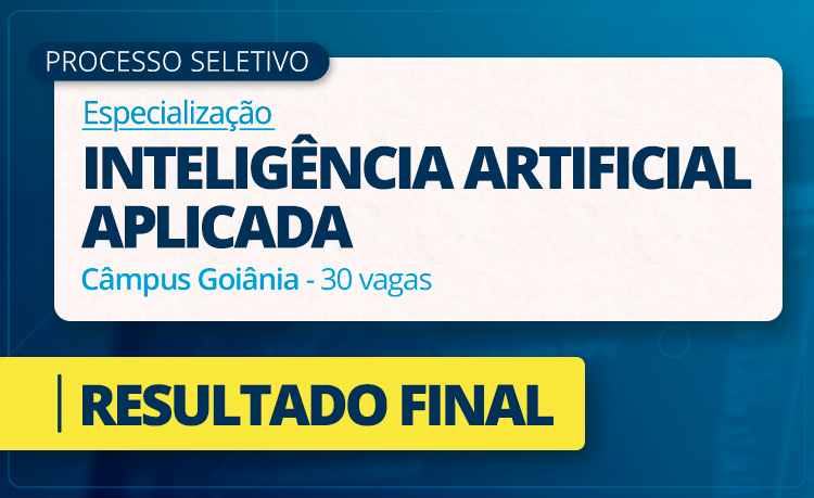 O Instituto Federal de Goiás (IFG) divulgou o resultado final do processo seletivo para a especialização em Inteligência Artificial Aplicada. Para conferir o resultado, basta acessar a página Estude no IFG e clicando no link referente à Pós-Graduação. Participaram desse processo seletivo 177 candidatos com inscrições homologadas.