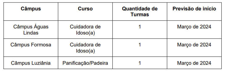 edital 06/2023 visa selecionar profissionais internos e externos para atuarem na função de professor nos cursos de Formação Inicial e Continuada (FIC), que serão ofertados pelo IFG, conforme quadro abaixo: