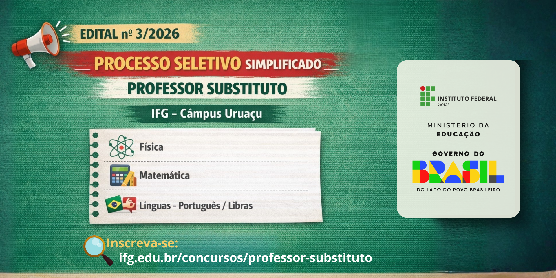 O Câmpus Uruaçu do Instituto Federal de Goiás (IFG) publicou o Edital nº 3/2026, que trata do Processo Seletivo Simplificado (PSS) para...